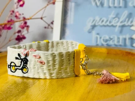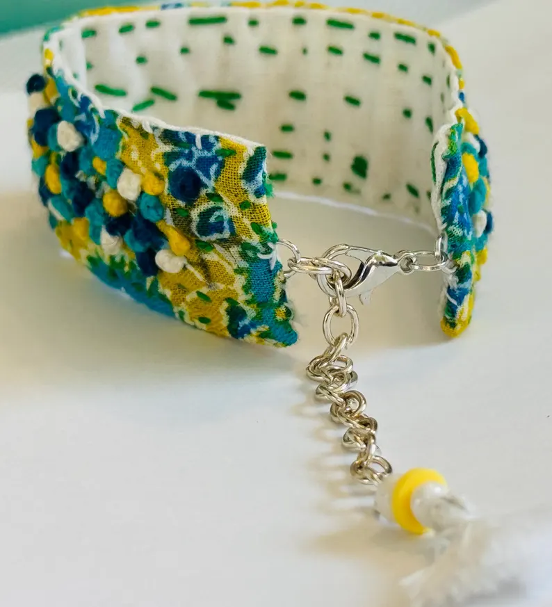 Experience the warmth of craftsmanship with this Handmade fabric bracelet which I made with a lot of dedication. A perfect addition to your jewelry collection or a thoughtful gift for someone special.